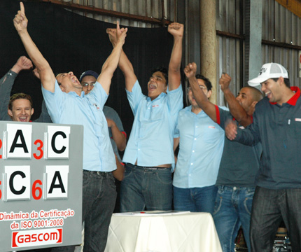 | SEXTA-FEIRA, 14 DE JANEIRO DE 2011 | 11:06 |  |  |  | Força Q foi a equipe vencedora da |  |  |  | A Gascom promoveu, na última quinta-feira (13/01), uma verdadeira competição entre seus funcionários para incentivar o conhecimento da Política da Qualidade da empresa. O processo faz parte da busca pela certificação da ISO 9001:2008, funcionando como uma prova de conhecimentos estudados.