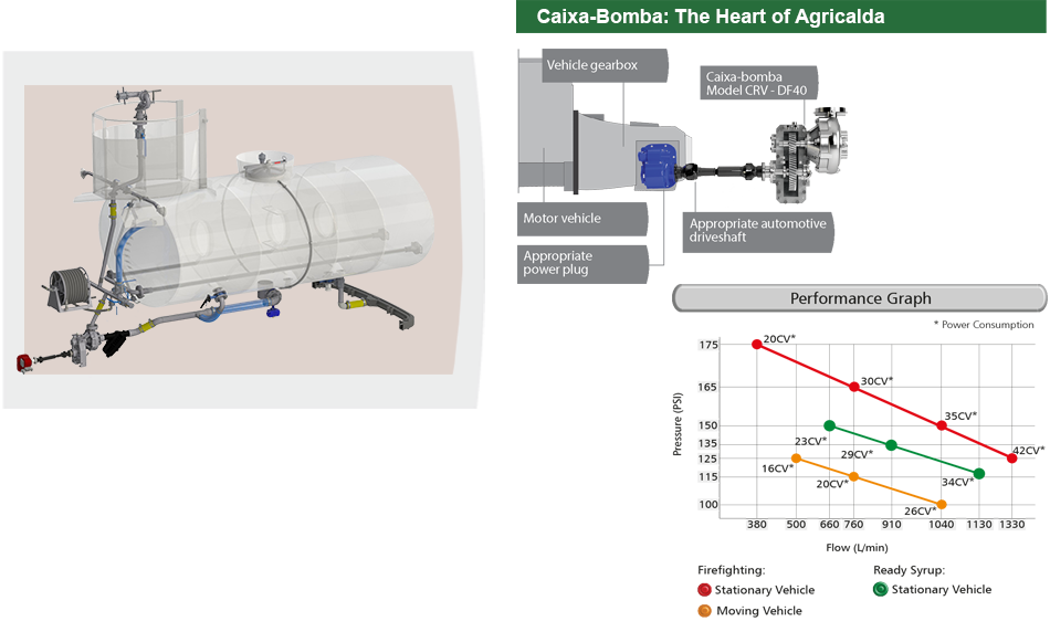 | • | Reliable. Pump with direct and geared transmission triggered by vehicle gearbox (caixa-bomba); |  |  |